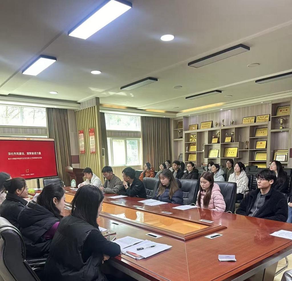 为深入推进作风建设,凝聚支部奋进力量,2026年3月13日音乐与舞蹈学院研究生党支部在艺术楼会议室召开2025年度组织生活会暨民主评议党员会议。学院杨娇老师、石浛池老师及支部全体党员参会,会议由李珂同志主持。