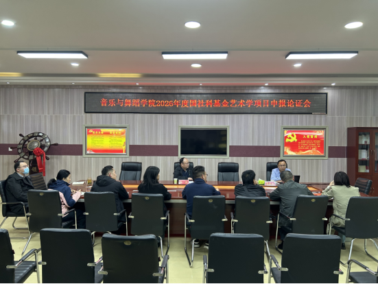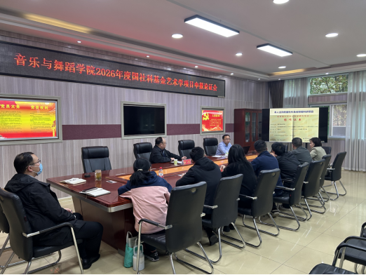 为进一步推进学院2026年度国家社科基金艺术学项目申报工作,加强科研骨干的培育引导,提升申报材料质量,音乐与舞蹈学院于11月15日下午,在艺术楼三楼会议室举行了国家社科基金艺术学项目选题与申报论证会,邀请武汉科技大学李技文教授为申报教师的选题及申报书进行指导,会议由学院副院长任远主持。