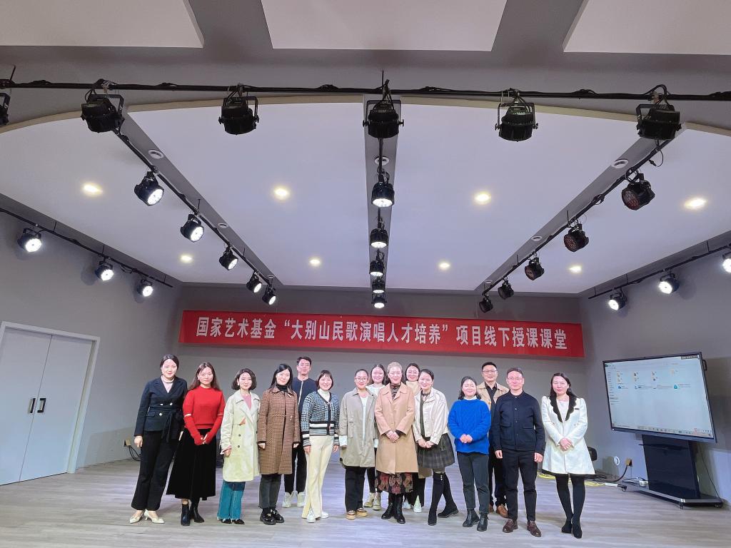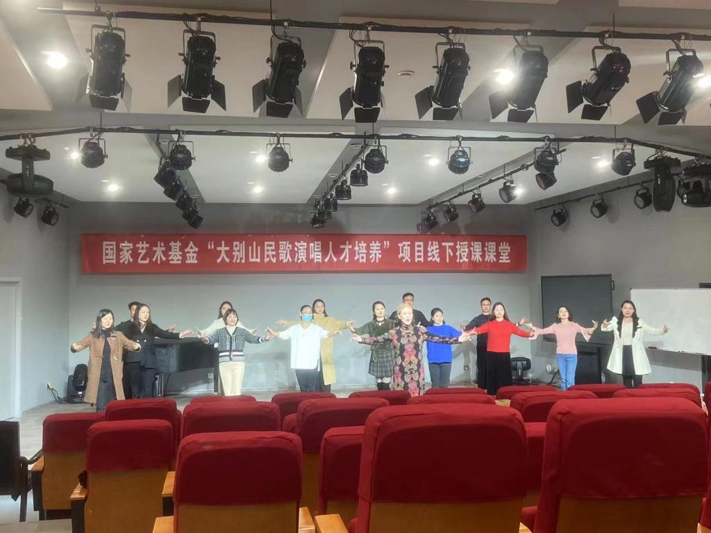 课堂上,学员们积极提问,郭德华教授一一解答疑惑。课堂氛围轻松愉快,学员们表示收获颇丰。最后,郭德华教授再次完整演示了京剧唱段《大雪飘》。她表示舞台表演中,戏曲是最高深的表演,能把戏曲表演好,歌唱表演就没有问题。这堂生动的表演课既让学员们了解了舞台表演的重要性,也学到了舞台表演的基本功,更调动了学员们学习的积极性,是“大别山民歌演唱人才培养”成功的第一课。