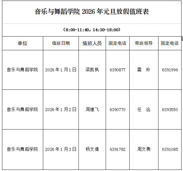 关于2026年元旦放假学院值班的安排通知